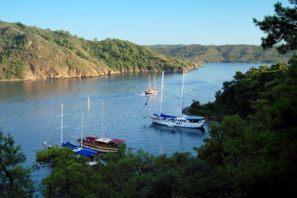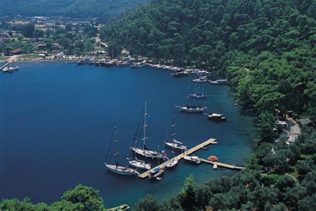 Karacasöğüt limanı, mavi yolculuk teknelerinin vazgeçilmez uğrak yerlerinden biri. Söğüt şelalesi ve Karacain Mağarası için Karacasöğüt'ten Okluk koyuna giderken şelale 25 m'den dökülüyor. Altında doğal havuzu var. Yaz aylarında suyu çekilen şelale gördüğünüzde sizi şaşırtmasın.
