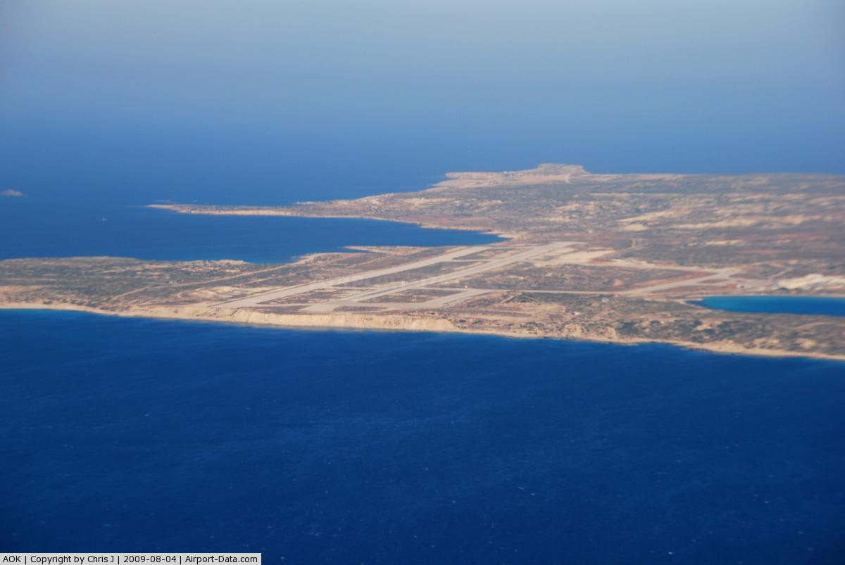 Rodos ve Girit adalarının ortasında, neredeyse Ege'nin en aşağısında bulunan, dağlık ve yabanıl bir ada. Rüzgarların adası olarak biliniyor. 50 km. uzunluğunda ve 10 km. genişliğinde, ince-uzun bir ada. Türkiye ve Yunanistan ana karalarına çok uzakta. Ada; küçük olduğu için, sanayi de yok.