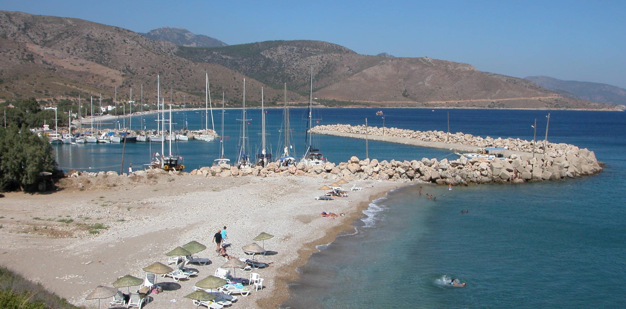 Adını palamut ağacından alan bu köyü zamanında yetişen palamut ağaçları yerine şimdilerde günümüzün en leziz ve en çok rağbet gören Badem ağaçları ve zeytin ağaçları bulunmaktadır.Tekne turuna katılanlar ya da yatlarıyla gelenlerin durmadan ve balık lokantalarına uğramadan geçemediği güzel koydur. Çıplak tepelerin yumuşak bir eğimle denize kavuştuğu, upuzun bir kumsal oluşturduğu, kumsal boyunca ağaçlıklar içinde köy evlerinin, küçük pansiyon ve yazlık evlerin sıralandığı, limanında balıkçı tekneleriyle birlikte yatların demirlediği bir güzel büktür Palamutbükü. Pırıl pırıl parlayan plajları, koyları , yeşilin bir çok tonunu göreceğiniz zeytin, badem ve çam ağaçları ile bir doğa harikası.Burası antik çağda , limanı ve verimli arazileri ile knidos 'un önemli bir yeri idi