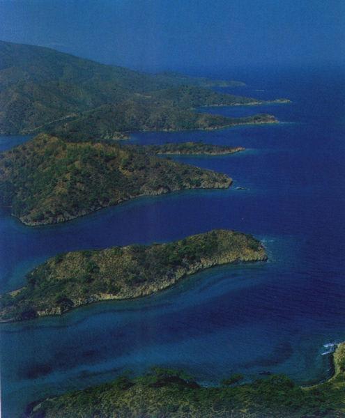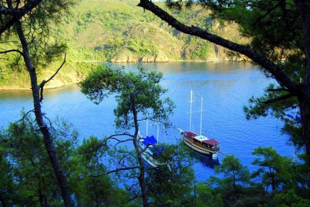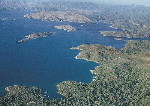 Gökova'nın çam ormanları ile kaplı güney sahilleri önünde dört ada, kıyı ile aralarında 2 milden geniş bir körfez oluşturur. Hemen her hava koşulunda bu ada ve koylar arasında demirlenecek çok sayıda sakin köşe bulunur. Batıdaki Martılı ada, çıplak bir adadır. Güney yakası ve doğu burnu üzerinde denize girilecek güzel kumsallar var. Diğer adalar, Uzun, Zeytinli ve Küçük adalardır. Hepsinin sahilleri dik kayalıktır ve kumsalları yoktur. Adalar çıplaktır ama koylarda sahiller yoğun çam ormanı ile kaplıdır. Çamaltı koyu, Bekar Liman (gökağaç bükü), Karağaç limanı, Uzun liman, Babüş bükü ve Küfre koyu ve Göllü ada, Yediadalar bölgesinin en önemli demirleme noktalarıdır. Çamaltı koyu sahili ve dibi kum. Kıyı ormanla kaplı. Bekar liman, 150 metre çapında bir havuz gibidir. Guletler girmez, yatlar ise pek az uğrar. En çok uğranan koy Küfre'dir bu bölgede. Tüm koylar bir birlerine toprak patika yolla bağlanır. Küfre'de azmağın başında teknelere hizmet veren Yedi Adalar isimli bir salaş lokanta da var. Küfre koyunun hemen karşısındaki Göllü ada da bağlanmak ve yüzme molası için uygun yerler arasında.